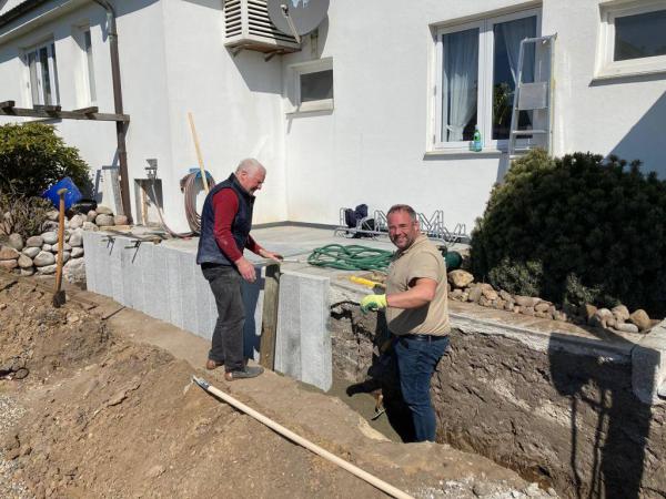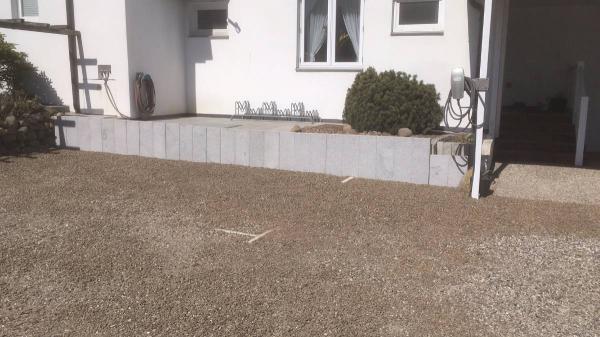 Wer unseren Hotel-Parkplatz kennt, weiß, dass dieser auf der Nordseite (Haus) und auf der Südseite (Nachbargrundstück) von Holz-Pallisaden eingefasst ist. Diese Holzpflöcke haben leider die Eigenschaft, dass sie nicht ewig leben, sondern verrotten. Wie das so im Lockdown ist, sucht man sich sinnvolle Beschäftigungen, entsprechend haben mein Vater und ich beschlossen die Holz-Pallisaden auf der Nordseite durch Granit-Pallisaden zu ersetzen.